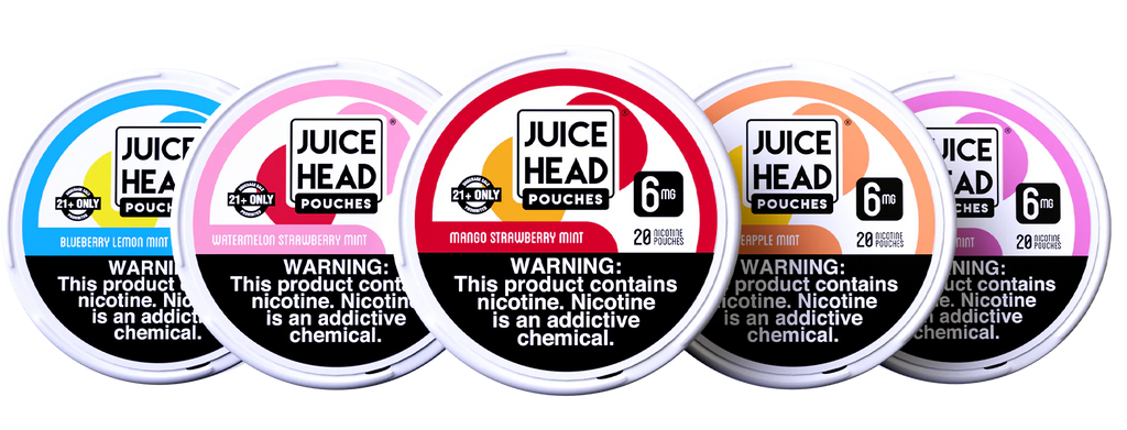 Juice Head nicotine pouches, the world’s first fruit-forward nicotine pouches. Available in 5 different flavors in either a 6mg or 12mg!